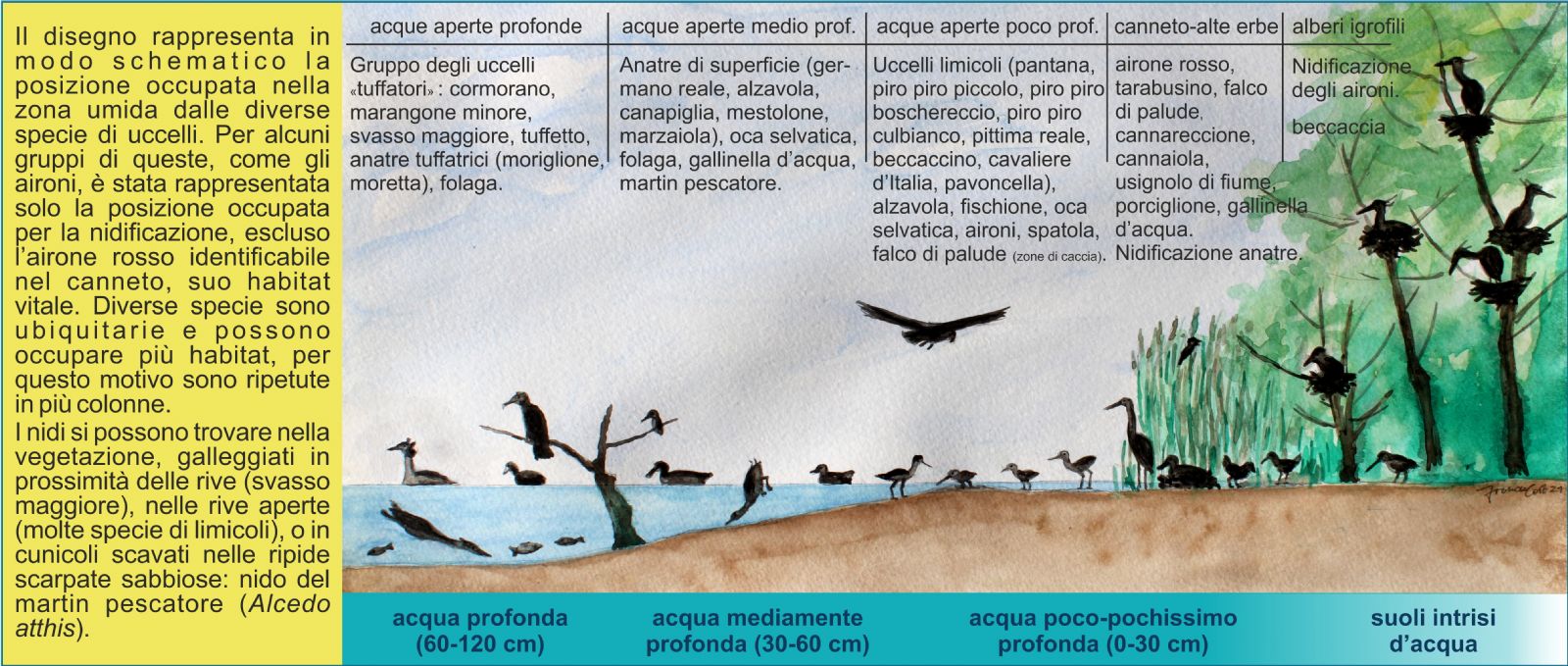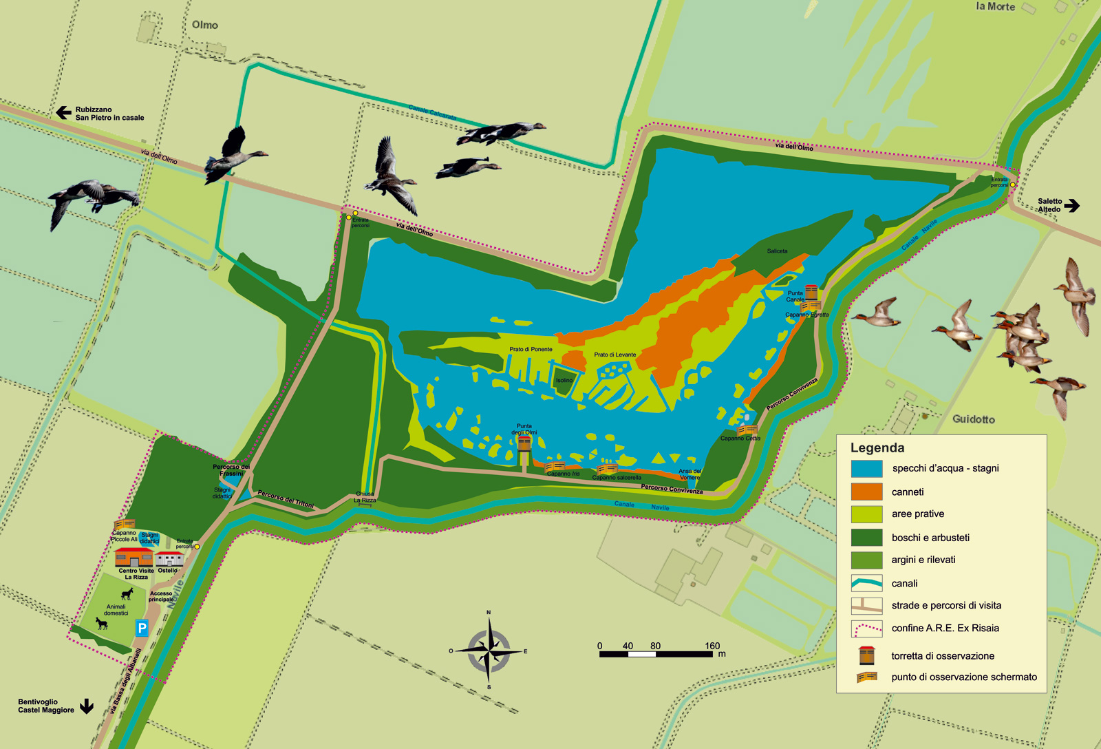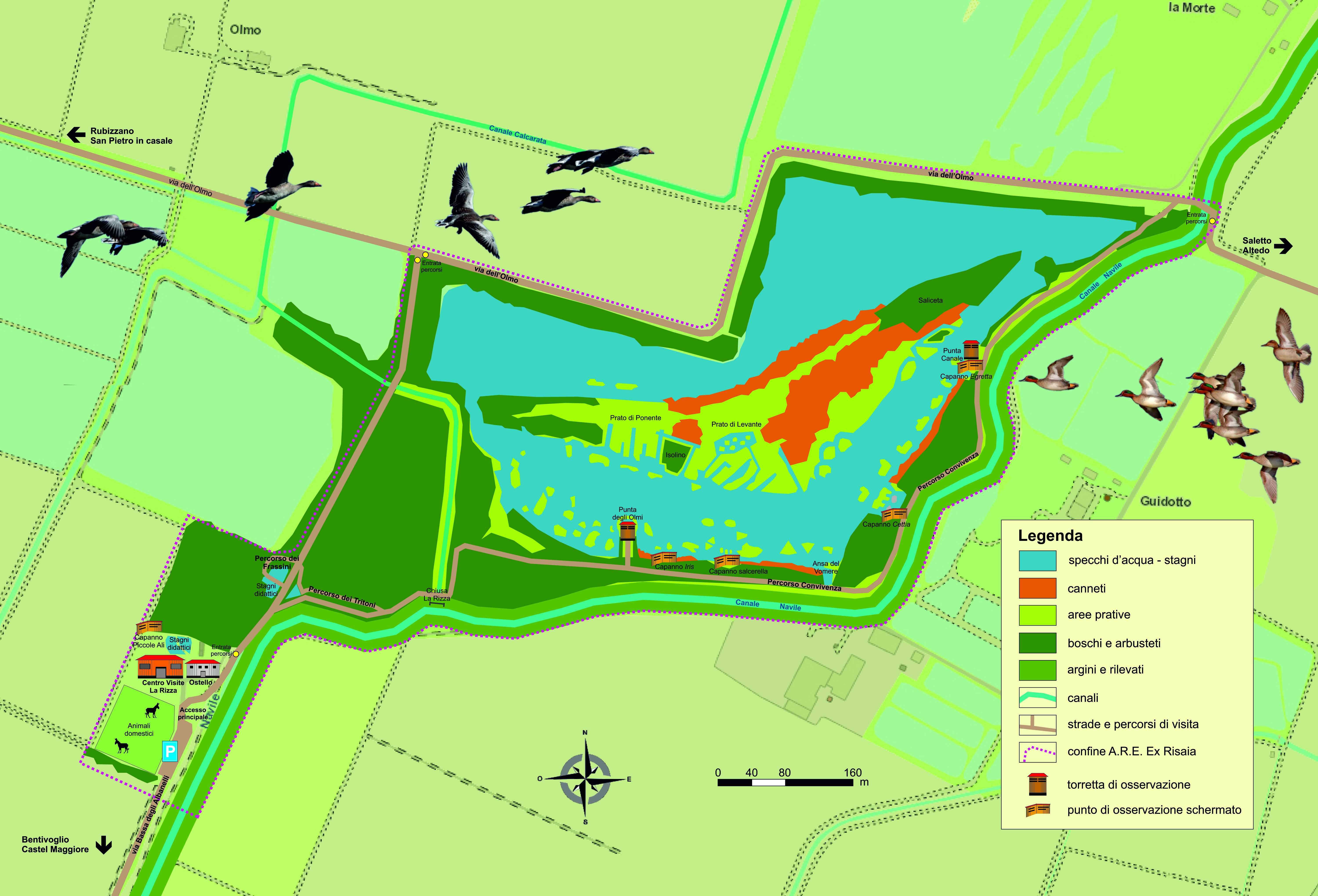 Gli ambienti presenti all’Ex Risaia sono molteplici e si articolano nello spazio geografico con la successione tipica degli habitat naturali, dovuta principalmente alle condizioni di allagamento, profondità dell’acqua, morfologia delle rive e degli argini.