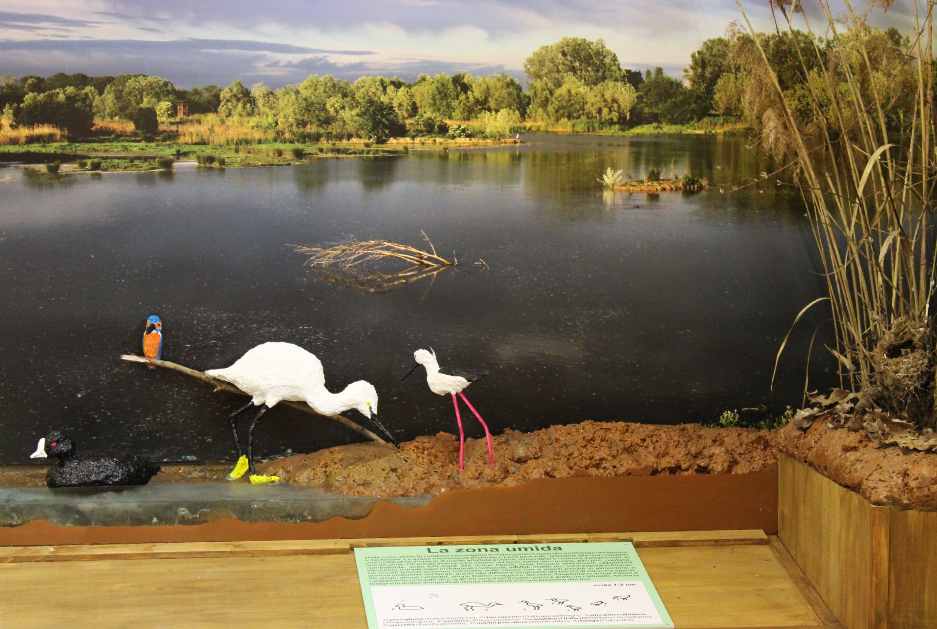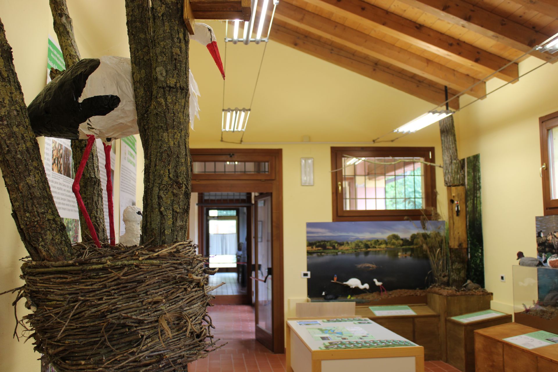- la Sala della Natura, allestita con pannelli divulgativi e diorami sul bosco e sulla zona umida, descrive gli ambienti principali e introduce alla visita sui percorsi di visita esterni dell’Oasi;